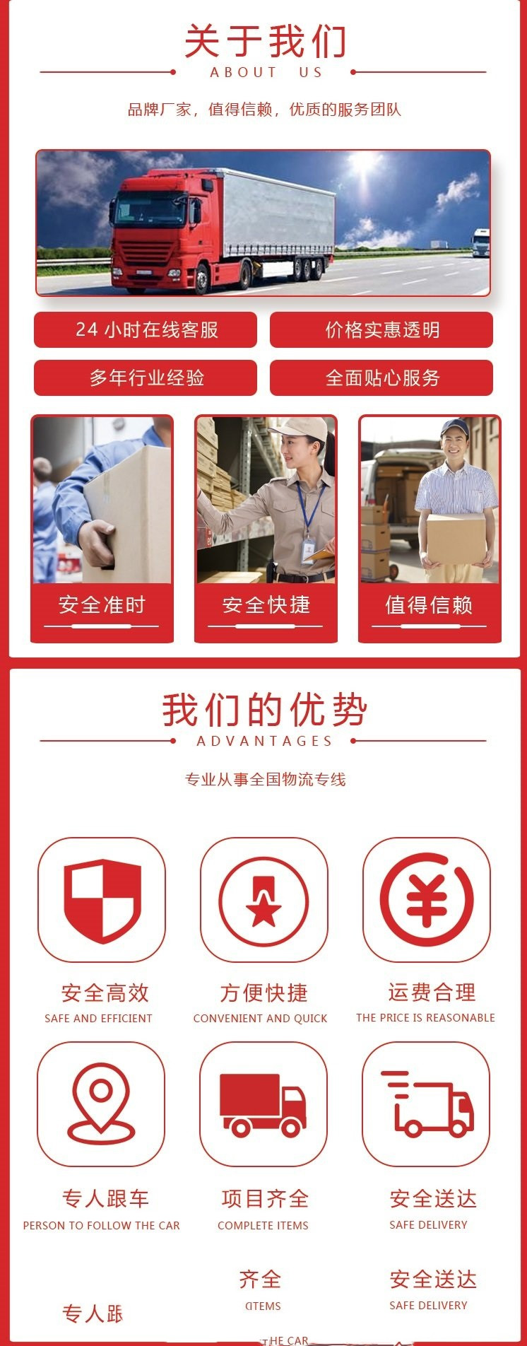 1、服务型:完善的物流体系,保证货物的安全与灵活多样化运输方式。